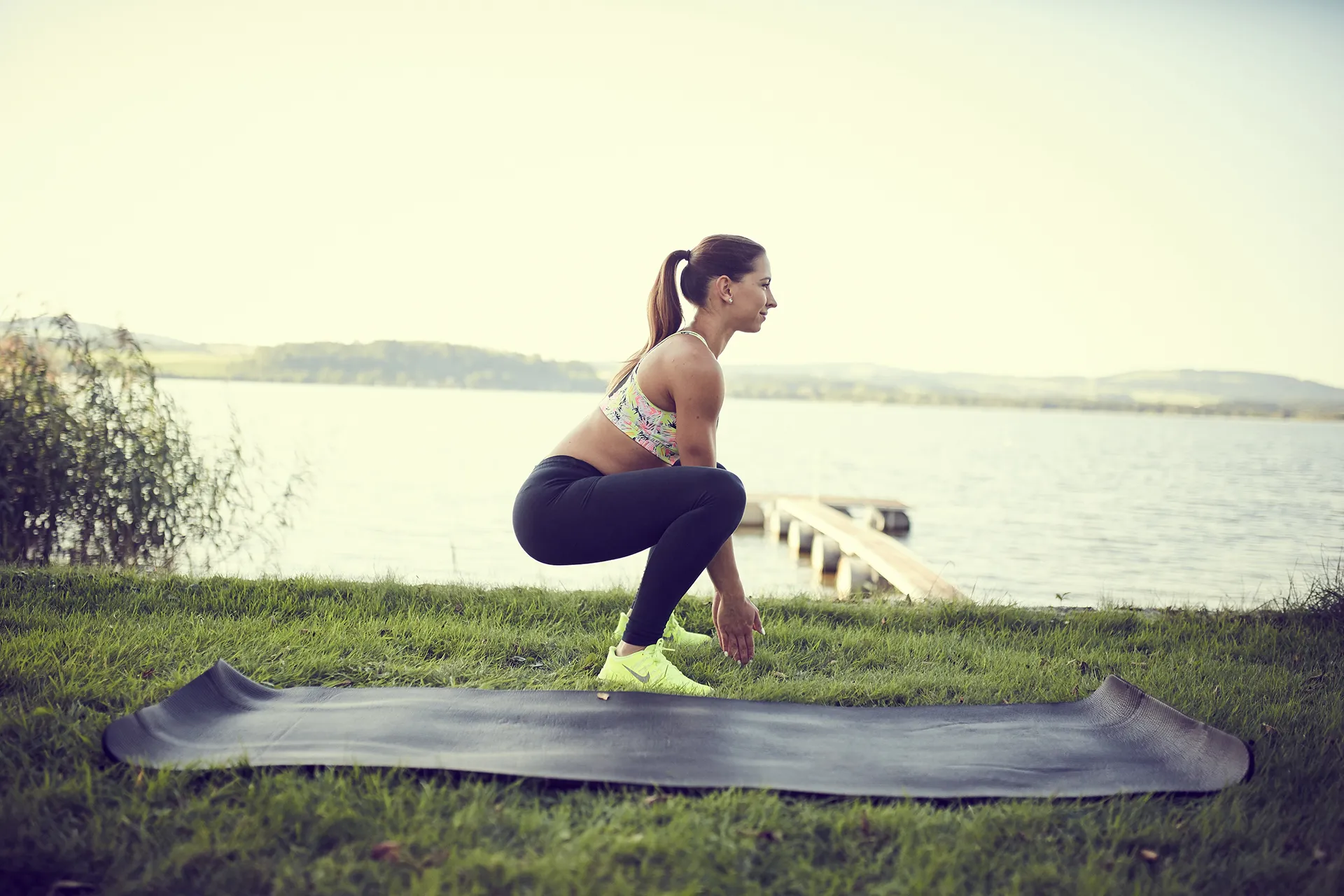 Sucht euch doch einen eurer Lieblings-Plätze für die Outdoor-Einheit. Sei es im Wald, in einem Park, an einem See oder sogar in eurem Garten. Wählt einen Ort, an dem ihr gern Zeit verbringt und euch wohl fühlt. Ich habe für mein Outdoor-Workout den See gewählt, dann kann ich mich nach der Trainingseinheit gleich noch im Wasser abkühlen.